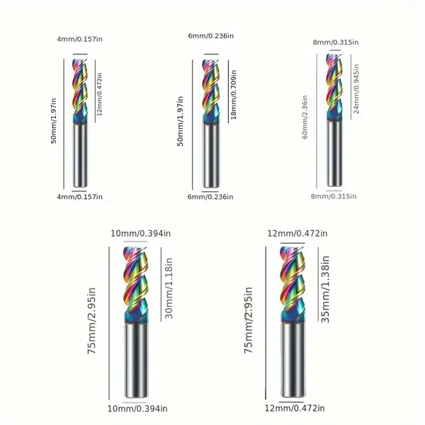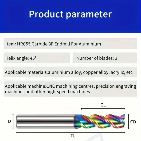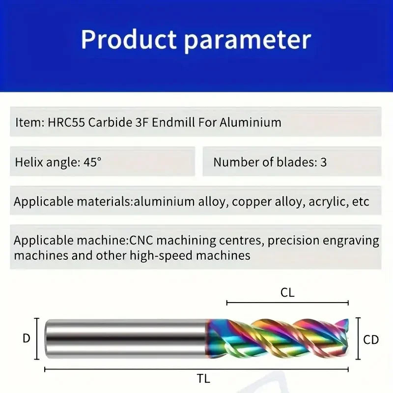 55° Colorful Aluminum Milling Cutter - 3 Flute Alloy Carbide End Mill with DLC Nano Coating, Sharp Cutting, Sturdy & Durable, Ideal for CNC Machining of Acrylic, Wood, Copper, Plastic, CNC Machining Tool | Vibrant Milling Cutter | Durable Milling Cutter
