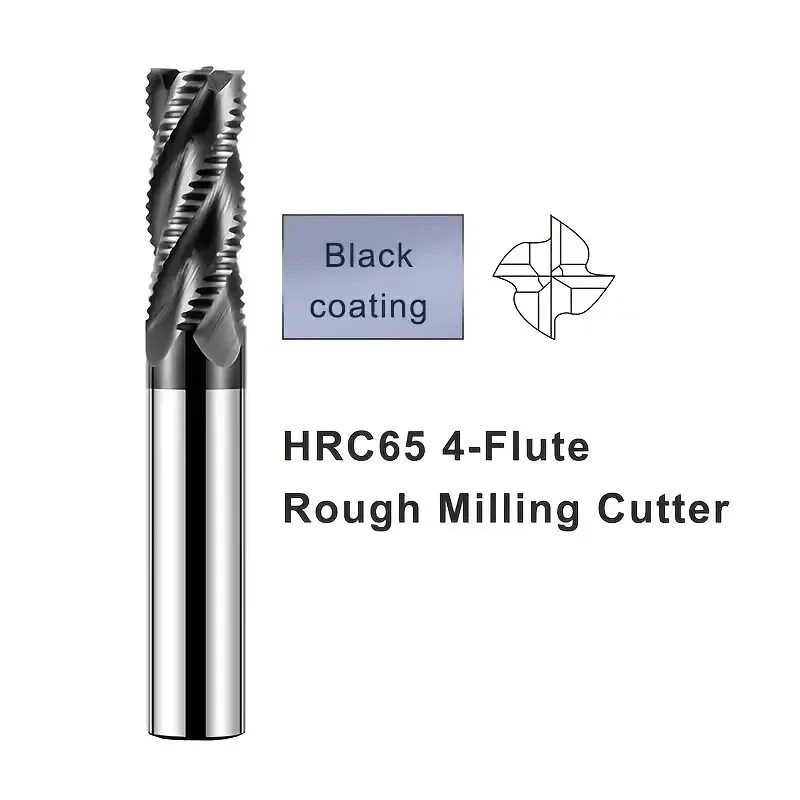 HRC65 Tungsten Steel 4-Sided Roughing End Mill - 65° Corrugated Wave Edge, Black Nano Coating, High Efficiency & Precision for CNC Machining Centers, Stainless Steel, Alloy Steel, 45# Steel, Mold Making Tools, Longlasting Tool Life